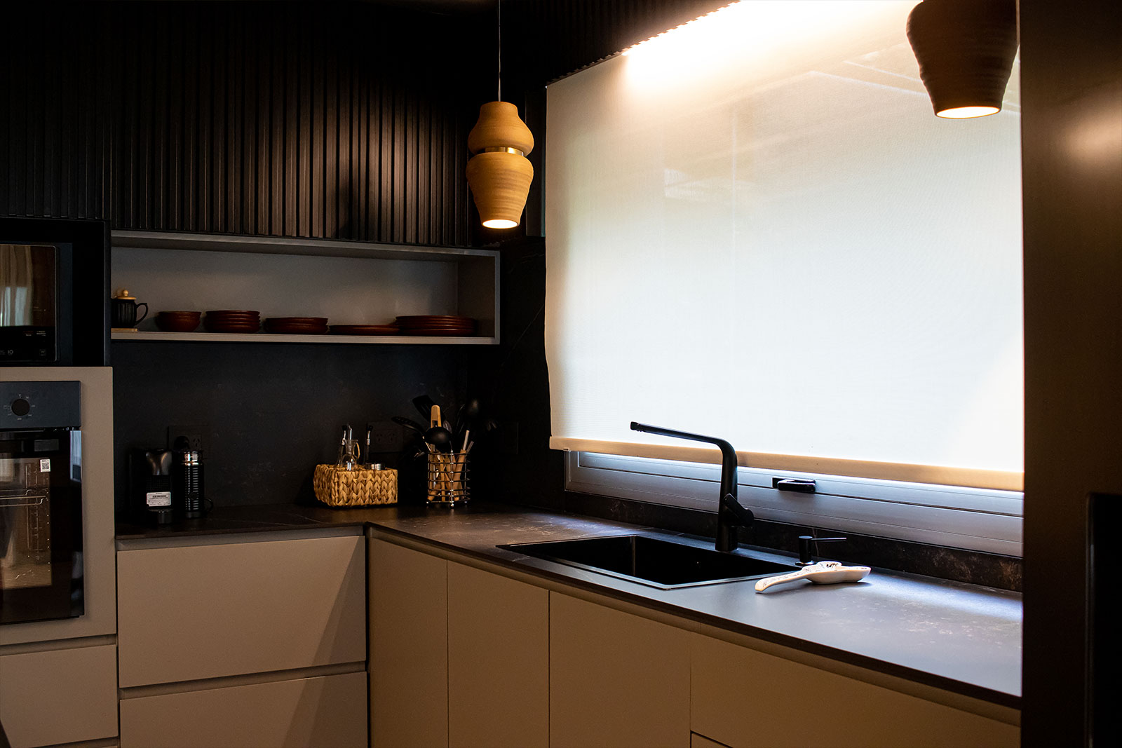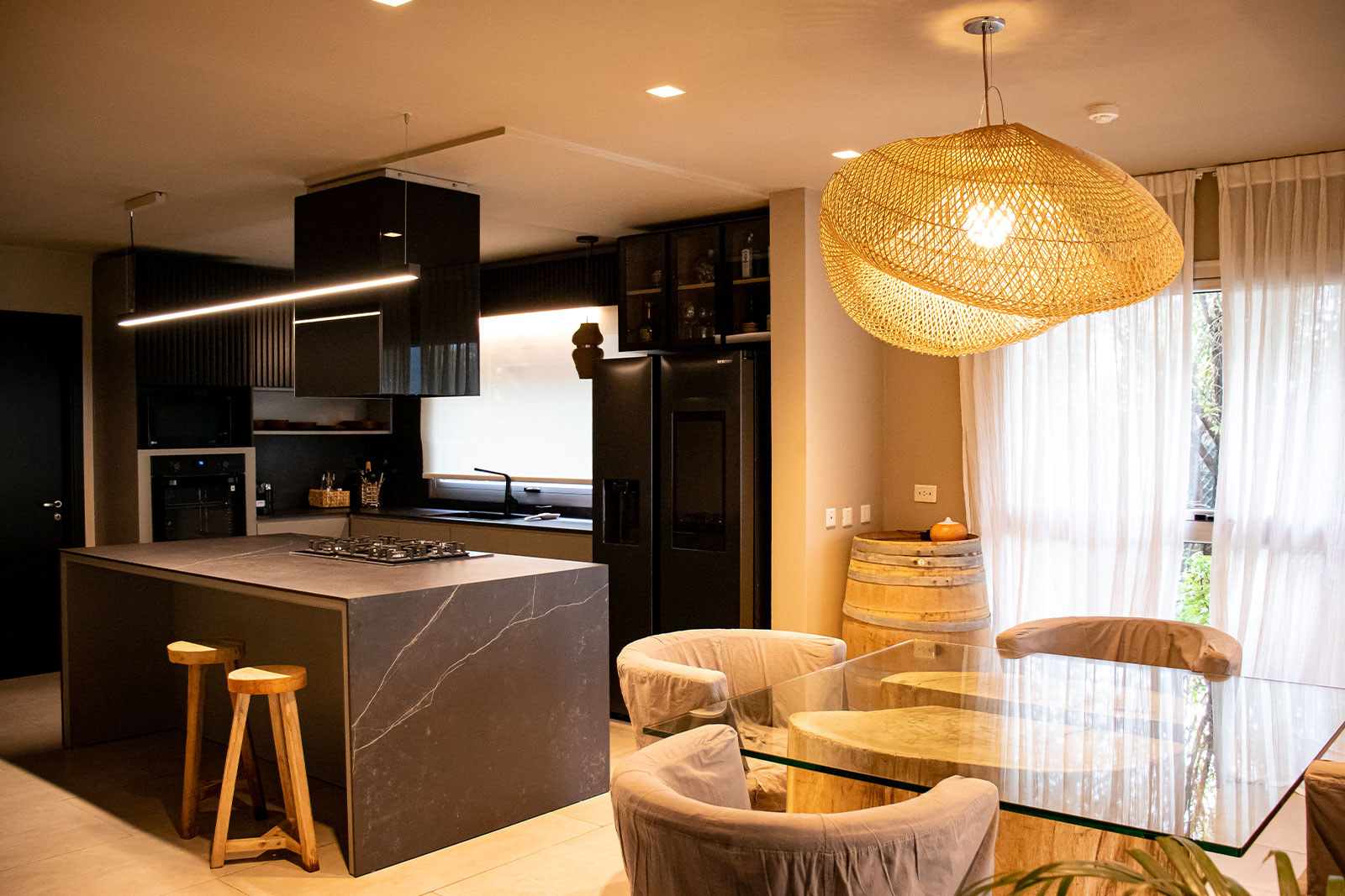 LA CASA QUE RECIBE UNA NUEVA HISTORIA, Los interiores ofrecen una atmósfera acogedora con espacios abiertos, mobiliario de líneas simples y detalles elegantes en tonos neutros. La cocina y las áreas comunes integran funcionalidad y estética, con iluminación cálida, superficies de mármol y elementos decorativos cuidadosamente seleccionados