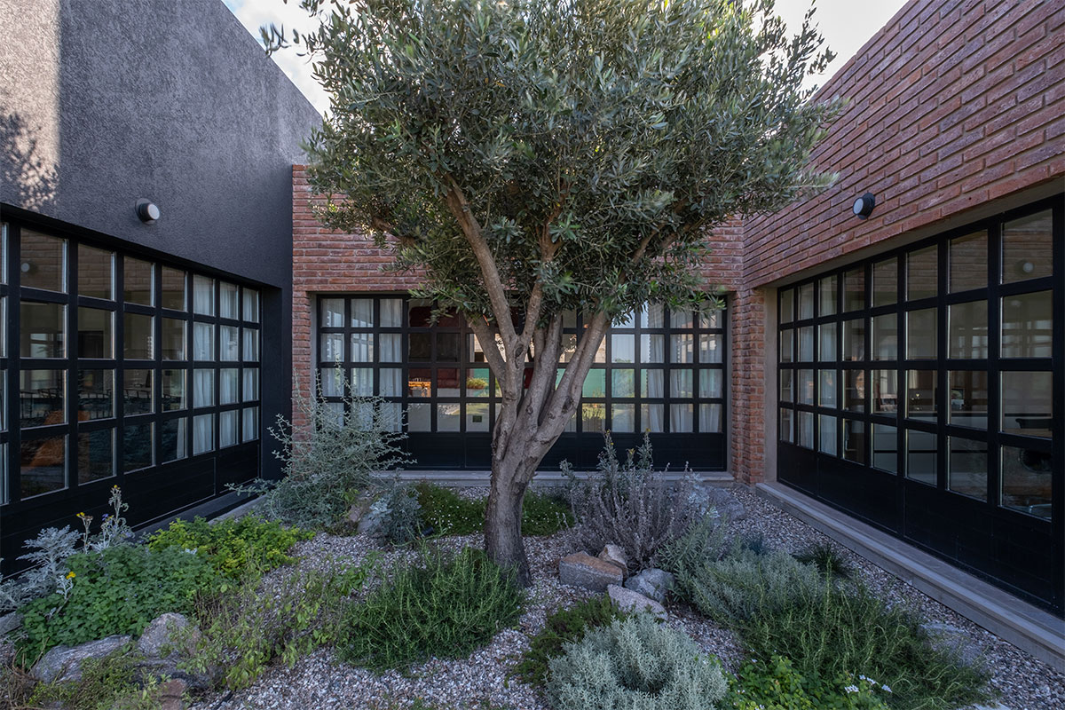 “El olivo” es una casa que emerge buscando la introspección y disfrute de lo propio en un lote plano rodeado de naturaleza autóctona.