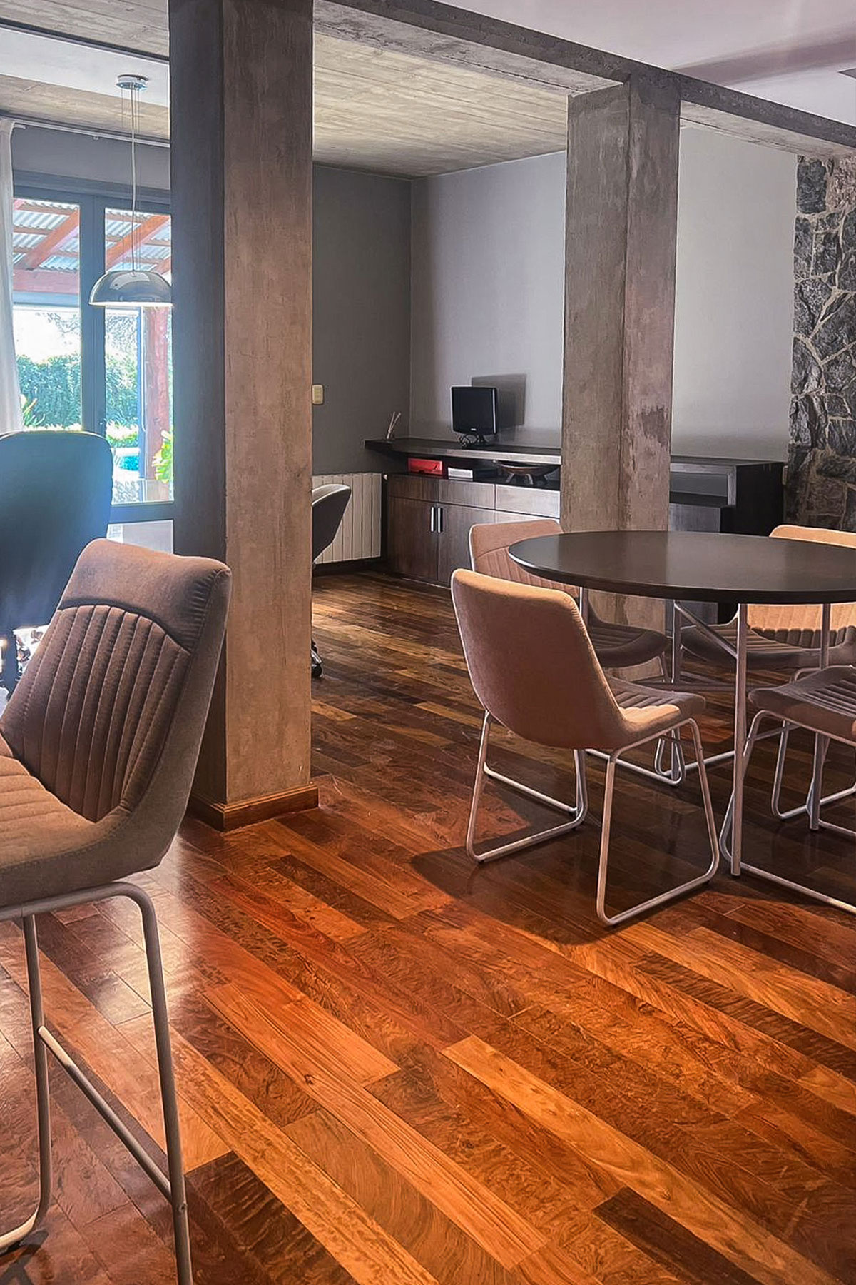 Hacer del espacio un lugar funcional y armónico que ayude a conectar con el presente. Transformamos un ambiente desordenado y sin usos definidos en varios espacios que son disfrutados de varias maneras por toda la familia.